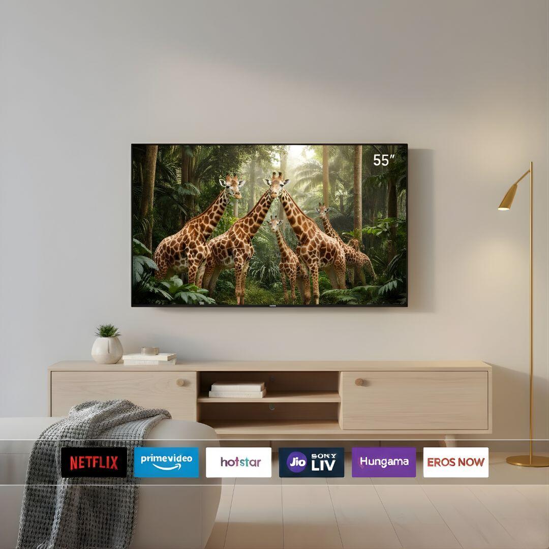 Its sleek bezel-less design adds a premium touch while Android OS offers smooth streaming and endless entertainment options.