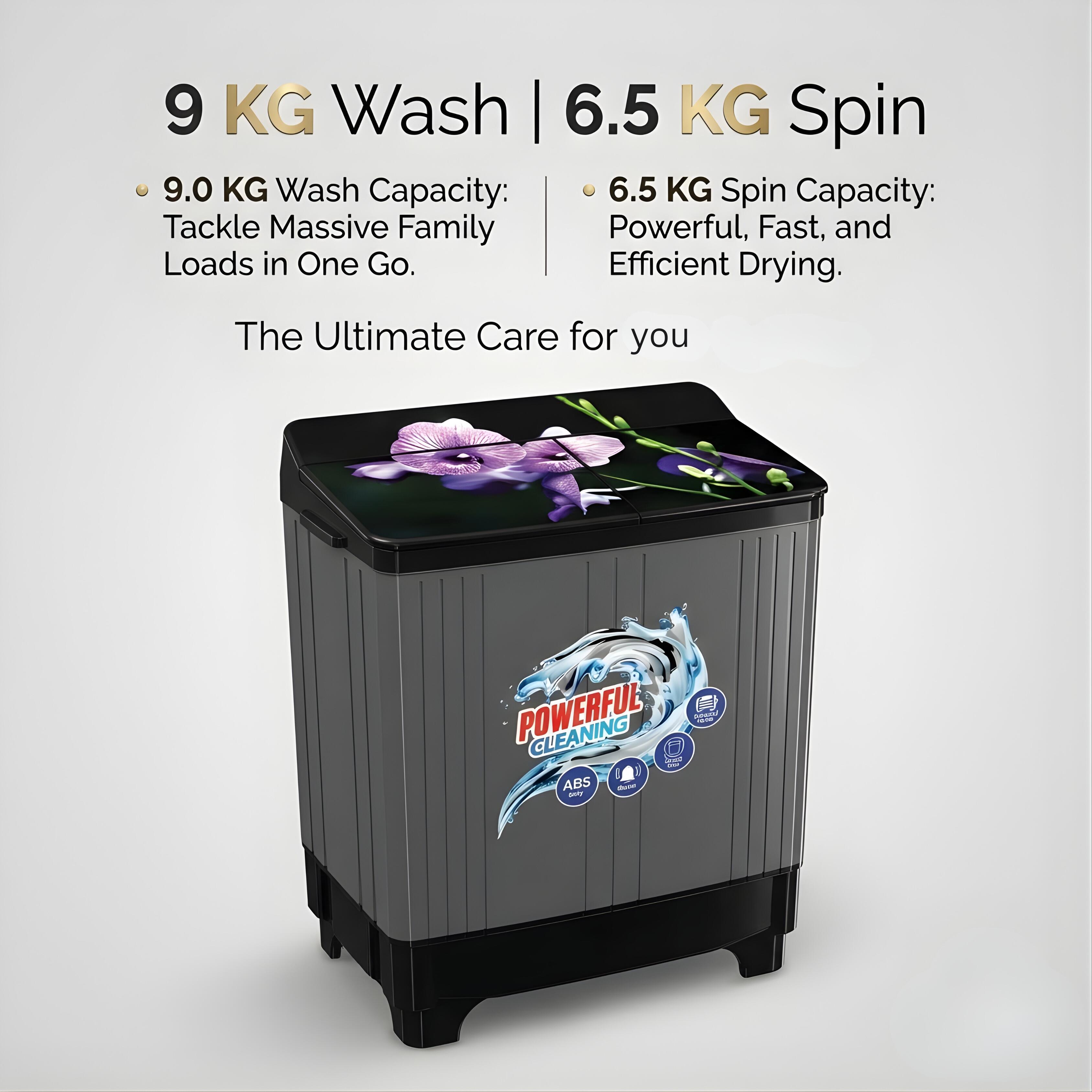 The NXP90FG 9.0 KG Semi-Automatic Washing Machine offers powerful cleaning with higher capacity and improved performance. Equipped with a strong 180W wash motor and heavy-duty pulsator, it removes tough stains easily while protecting fabrics.