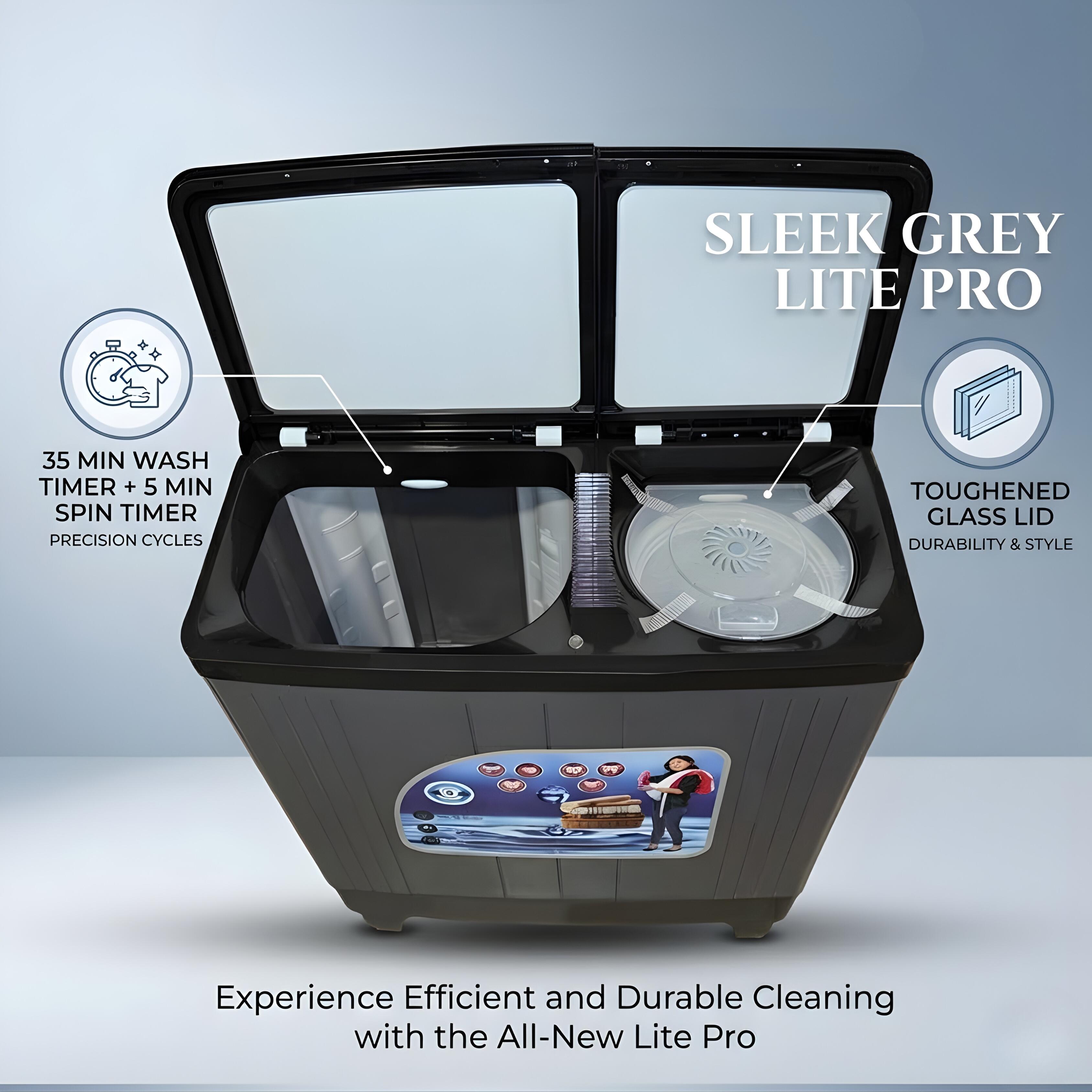 The spacious tub allows larger loads, reducing wash cycles and saving time. Its toughened glass lid, durable ABS body, and user-friendly controls ensure long-lasting performance.